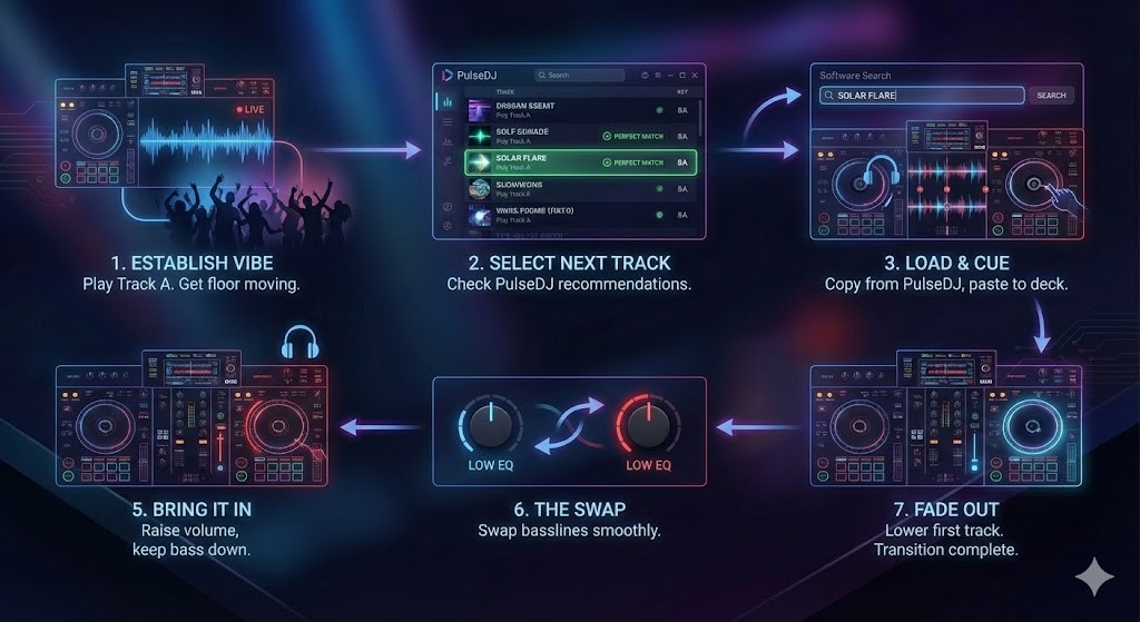 Here is a short, practical step-by-step guide on mixing on decks that you can insert directly into the "The DJ Workflow" section of the blog post.
